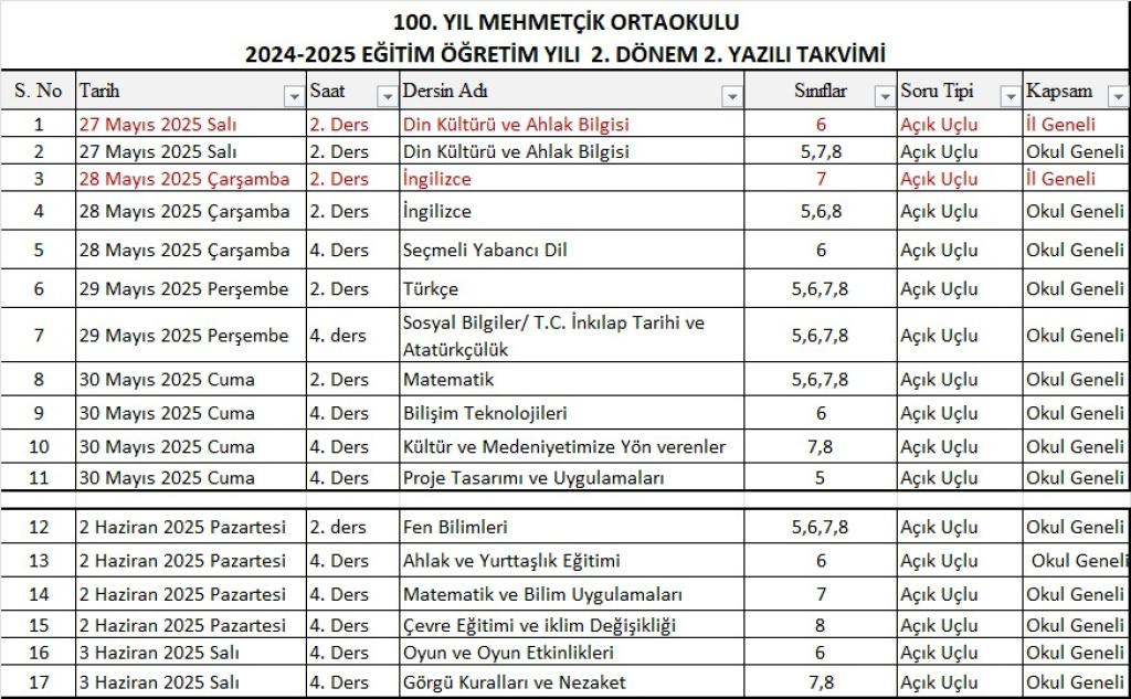 Gelişim Takip Değerlendirme Uygulama Takvimi